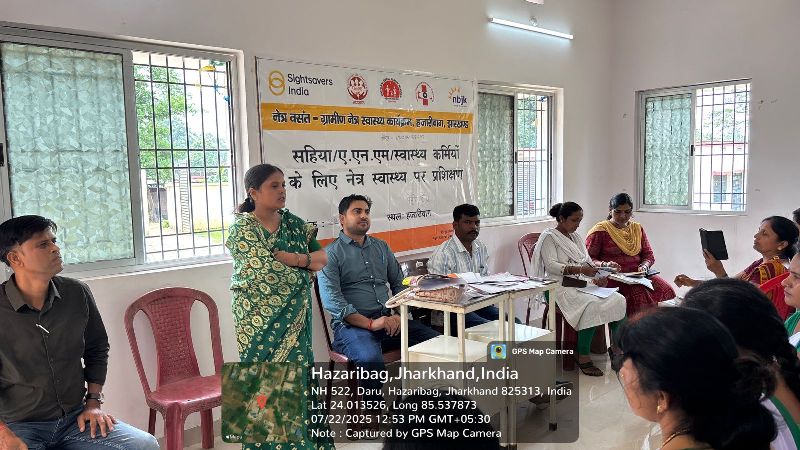 23 July 2025, Peto (Daru, Hazaribagh): A one-day training session was organized yesterday at the Community Health Centre, Peto, located in Daru Block of Hazaribagh district, under the joint initiative of Sightsavers India, JSLPS, National Health Mission, and the National Programme for Control of Blindness. The training was conducted under the Rural Eye Health Programme – Netra Vasant, operated by Nav Bharat Jagriti Kendra (NBJK).