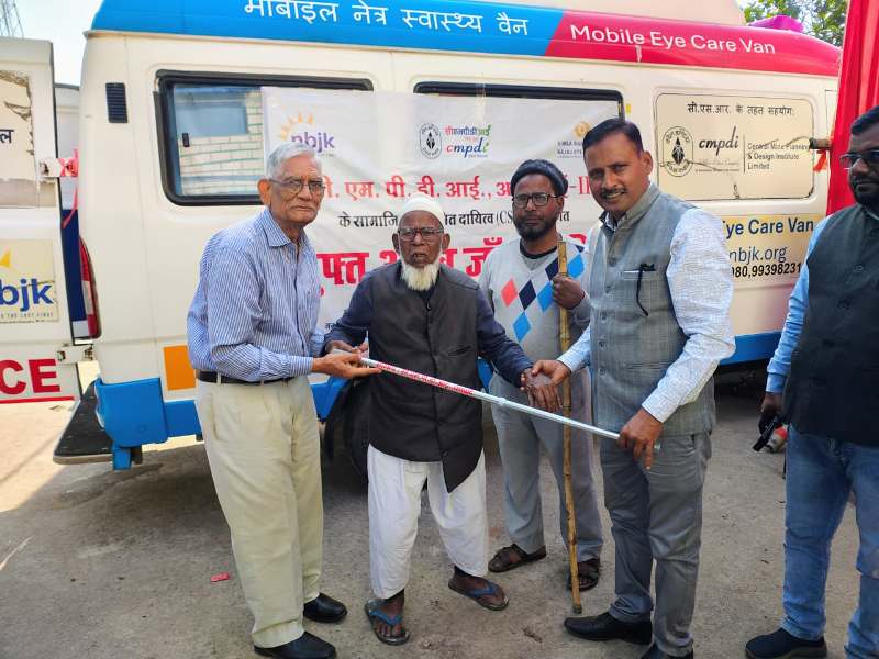 29 November 2025, Dhanbad: NBJK’s Vimla Ramkrishna Bajaj Eye Hospital, Deoghar organized a free eye screening camp at Bhikhrajpur Panchayat Bhawan in Baliapur block of Dhanbad district under the CSR support of CMPDIL–RI II, Dhanbad. On this occasion, CMPDIL handed over a Mobile Eye Health Van to the hospital, which was jointly inaugurated by Mr. Uma Shankar Singh (Regional Director, CMPDIL), Mrs. Nitu Singh (President, Mahila Mandal), and Mr. Satish Girija (Secretary, NBJK).